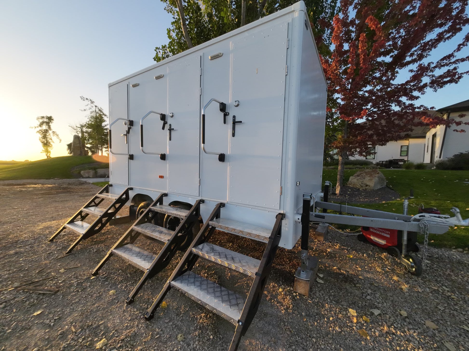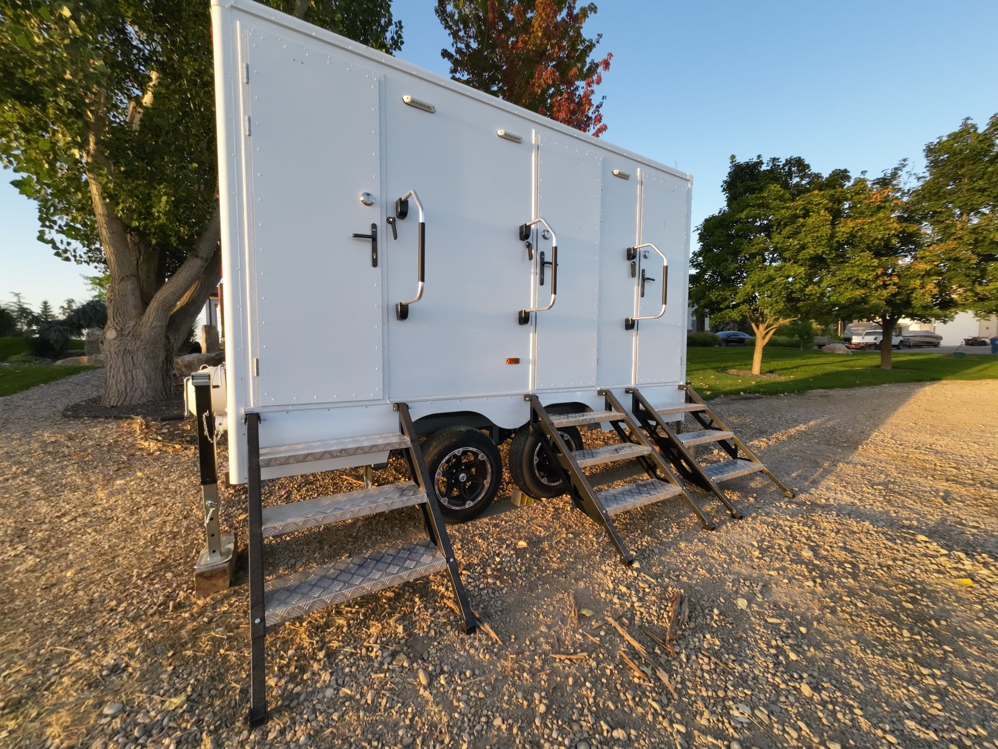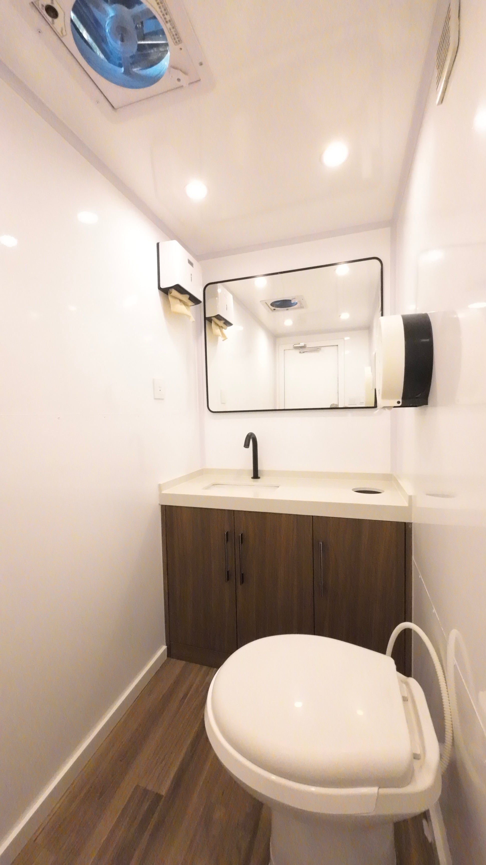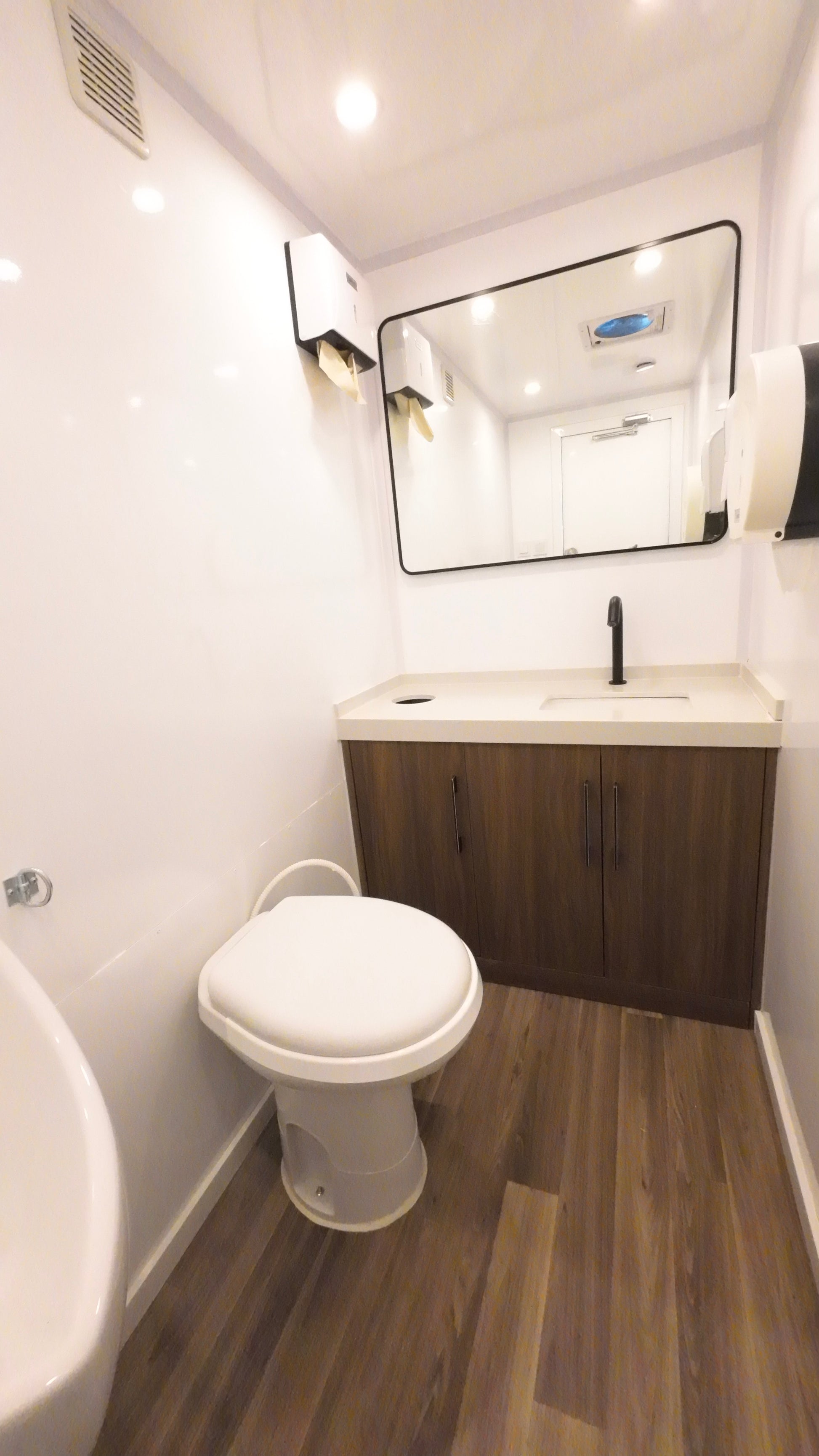 Experience luxury and convenience with our Two Stall Bathroom. Perfect for events and more, it's available in both two and three stall styles. Elevate any occasion with the added comfort and style of our portable bathroom.